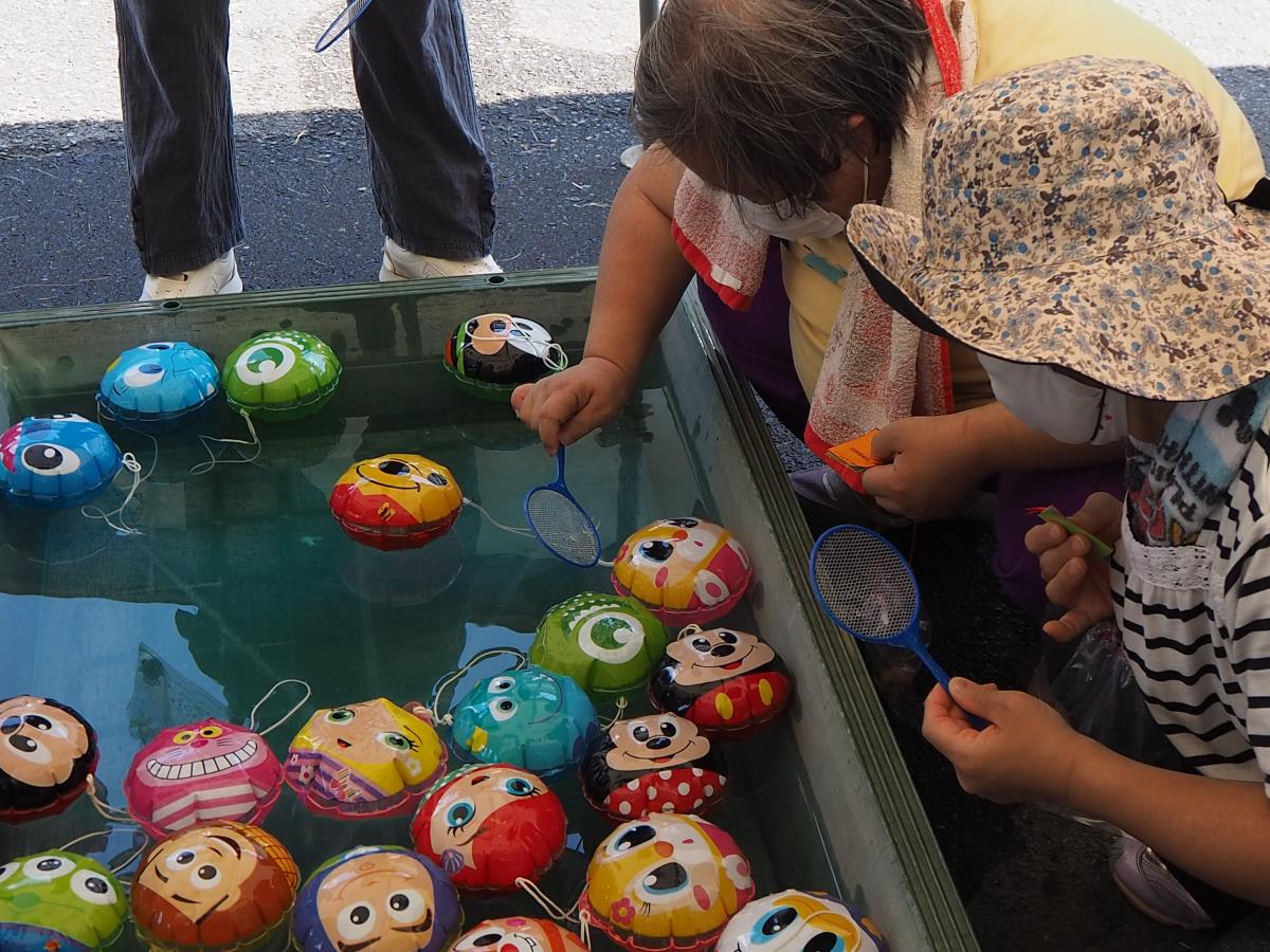 「夏祭り」の模擬店で、金魚・ヨーヨーすくいと水鉄砲射撃を楽しみました。