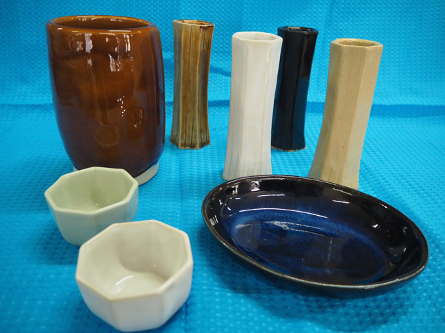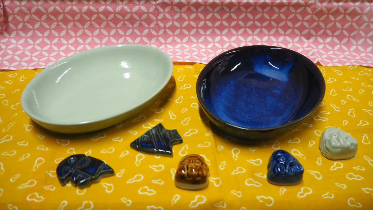 陶器は、美濃焼の流れを汲み、粘土・釉薬原料は岐阜県多治見市より取り寄せ、手びねり・流し込み・たたら等の製法により一つ一つ心を込めて手作りし、焼き上げております。