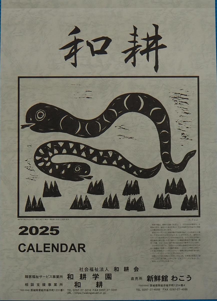 和耕学園では、毎年手作り版画のカレンダーを販売しております。
